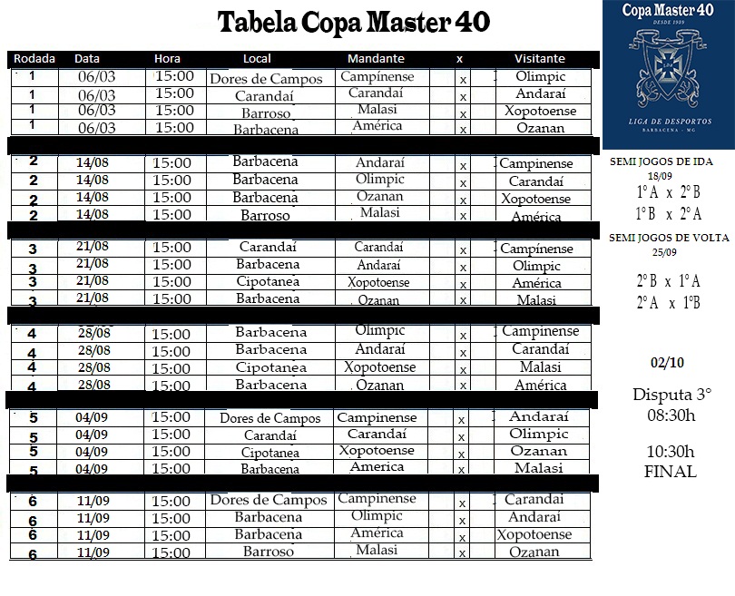 Está de volta a disputa da Copa Master 40, o quarentão regional de futebol de campo, este ano intitulado Troféu José Fernandes de Oliveira. E entre os times que disputam a competição está o Malasy, de Barroso.