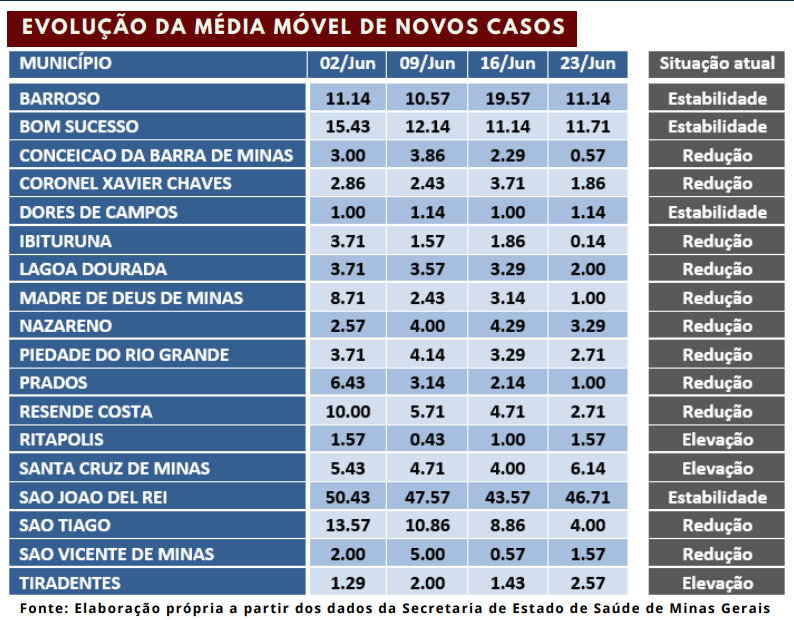 De acordo com o Núcleo de Ensino, Pesquisa e Extensão em Economia da Universidade Federal de São João del Rei (UFSJ), a tendência para Barroso é de estabilidade. Os últimos números, do dia 23 de junho, mostram que houve redução de 19.57 para 11.14.