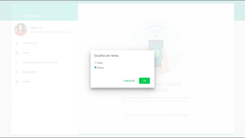 Tendência em diversos aplicativos e até em sistema operacional, o chamado modo escuro ou noturno (Dark Mode, em inglês) chegou à versão desktop/web do app de mensagens mais popular do mundo.